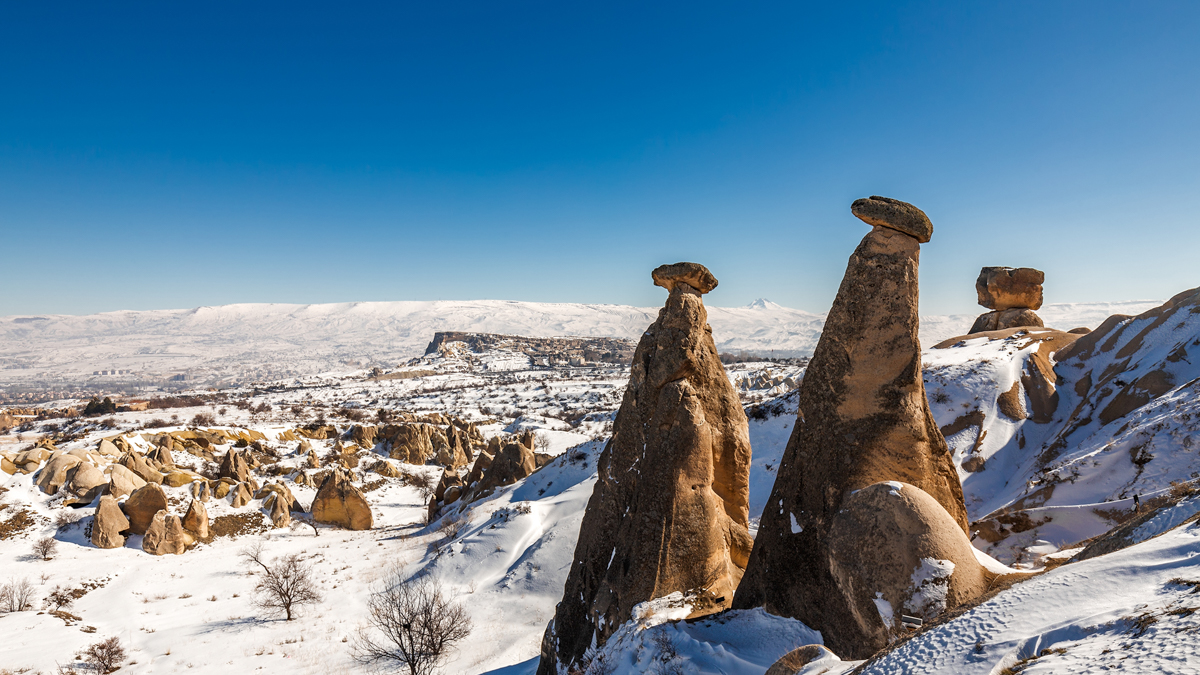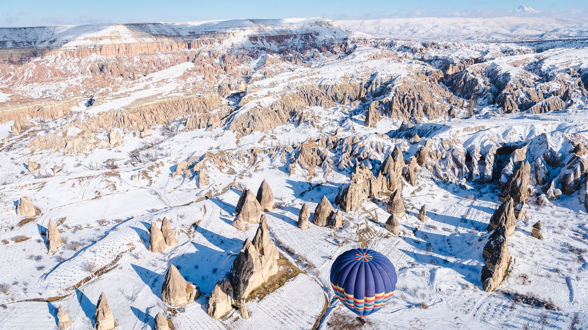 Turcja i śnieg? Raczej nie myślimy w tych kategoriach, postrzegając ten kraj jako ciepły nawet zimą. W istocie tak jest na wybrzeżach, jednak środkowa część kraju ma odmienny klimat. Jeśli chodzi o Kapadocję, to ukształtowanie terenu tworzy mikroklimat sprzyjający opadom śniegu i uprawianiu zimowych sportów. Na zboczach wulkanu Erciyes w Kapadocji funkcjonuje największy ośrodek narciarski w tej części Turcji, oferujący ponad 100 km tras, nowoczesne gondole i zróżnicowane poziomy trudności.