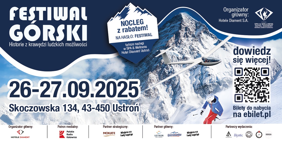 Festiwal Górski w Ustroniu 2025 to nie tylko inspirujące prelekcje i spotkania z pasjonatami gór. To także troska o Twój komfort i wygodę. Jeśli szukasz idealnego miejsca na nocleg, Hotel Diament w Ustroniu przygotował dla Ciebie wyjątkową ofertę. Znajdziesz tu szeroki wybór komfortowych pokoi hotelowych, które doskonale sprawdzą się zarówno dla samotnych podróżników, jak i rodzin z dziećmi. Dodatkowo Hotel przygotował specjalny rabat na nocleg i strefę SPA & Wellness dla uczestników festiwalu. Szczegóły promocji znajdziesz na stronie hotelu.