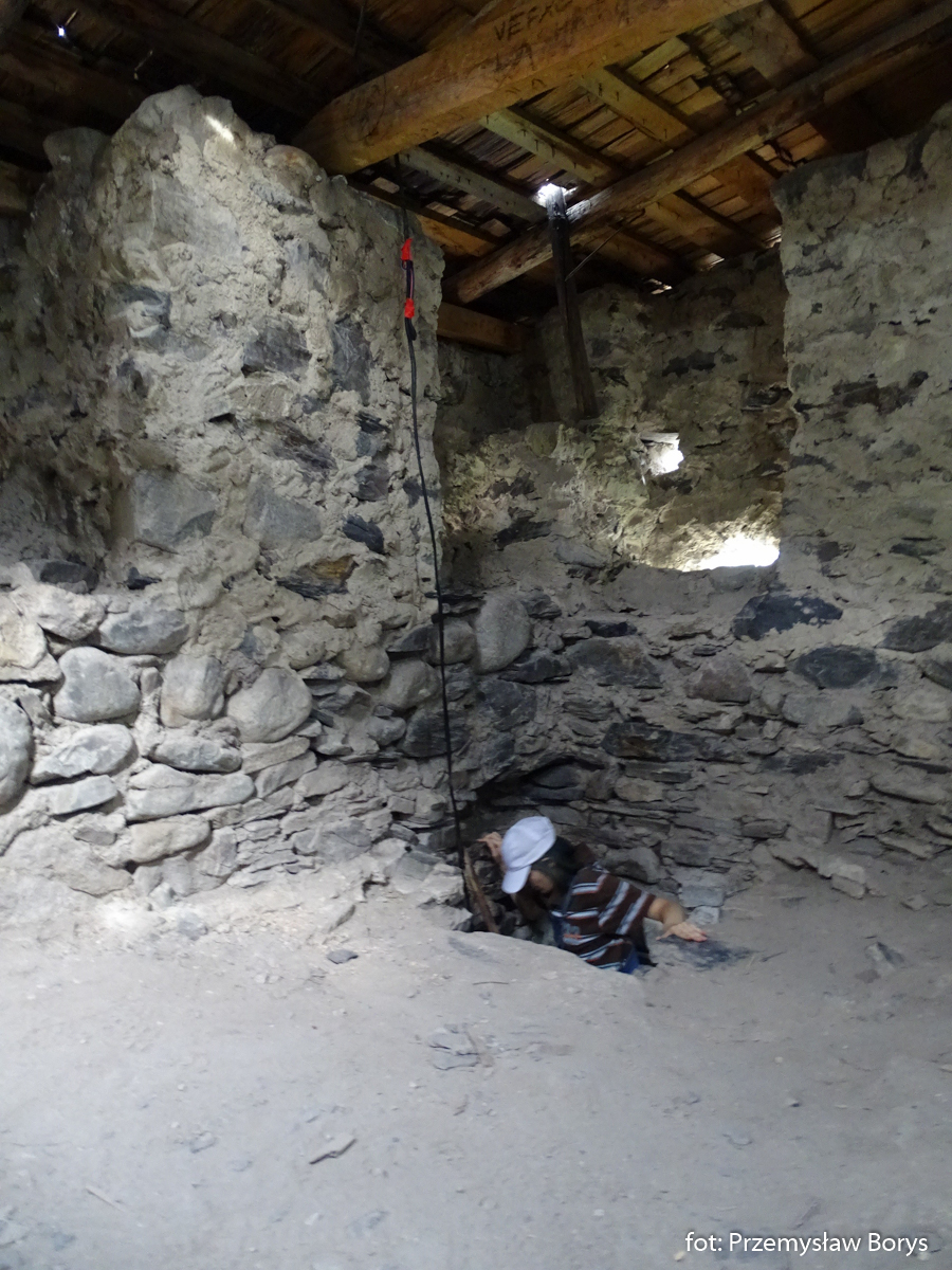 W dużej wieży można przyjrzeć się konstrukcji machikuł (tu nazywane salode) – znowu wygląda to inaczej niż w rytmicznej konstrukcji wież swaneckich. Z kolei w mniejszej wieży można obejrzeć otwory obronne domu fortecznego – wykorzystane w późniejszych czasach na otwory spichlerza.