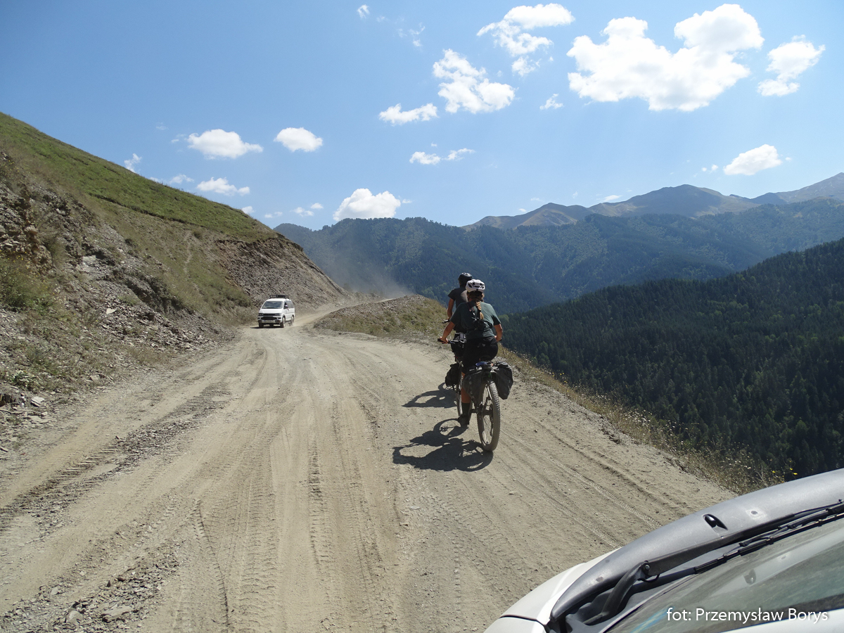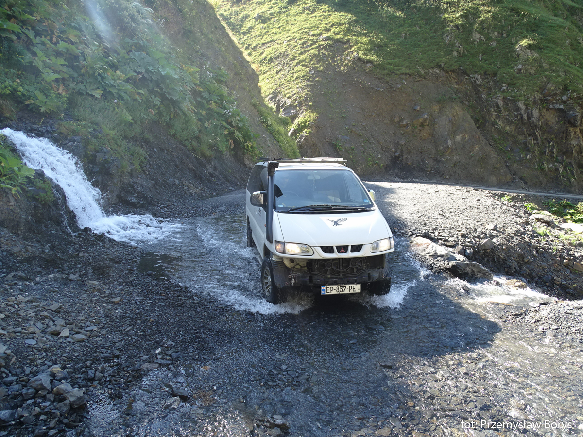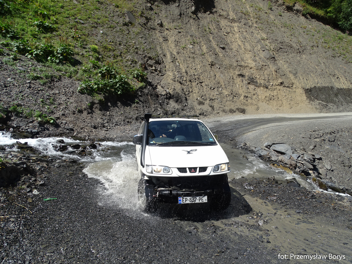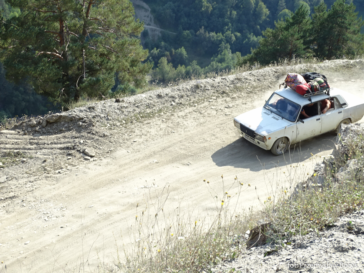 O ile dojazd do Uszguli można zrealizować za pomocą w miarę normalnego samochodu, to na przejazd do Tuszetii firmy wynajmujące samochody nie zgadzają się tak chętnie. Droga jest wprawdzie do pokonania nawet Ładą Żyguli 2105, ale potrzebne jest doświadczenie w jeździe terenowej, aby nie uszkodzić auta. Z tej przyczyny skorzystaliśmy z możliwości wynajęcia kierowcy – którym stał się dla nas Daniel Megularidze. Drogę do Tuszetii spędziliśmy na różnych rozmowach między innymi o wojnie w Ukrainie, o tym dlaczego jako Polacy mówimy na Gruzję – tak po rosyjsku „Gruzja”, a nie bardziej po gruzińsku Sakartwelo, albo też o tym czy Stalin był dobrym człowiekiem.