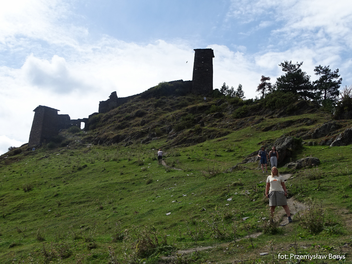 Po 4 godzinach jazdy docieramy do celu naszej podróży – wioski Omalo. Kierujemy się na wzgórze, obejrzeć tutejszy kompleks wieżowy – zamek Keselo. Z oddali wygląda to całkiem podobnie do wież swaneckich. Wieże tak samo mają wysokość 3 do 5 kondygnacji, też są zbudowane z kamienia na planie kwadratu i też przylegają do nich inne zabudowania. Podobnie jak