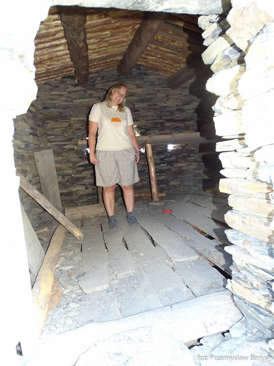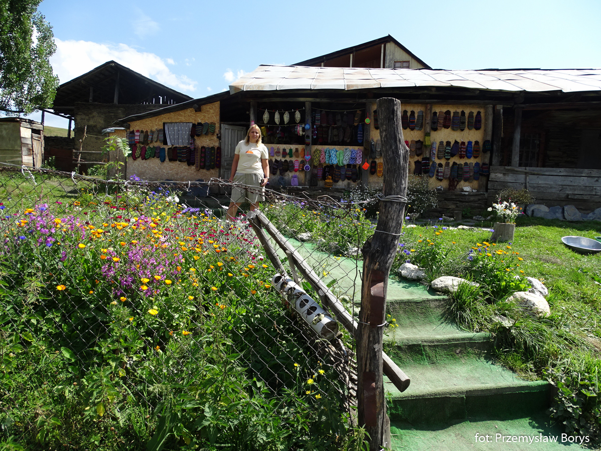 Zdjęcie przy (pozbawionej okien) ścianie tego domu. Zaletą Uszguli jest naturalność otoczenia, nie ma tu asfaltu jak w innych tego typu regionach turystycznych w Europie