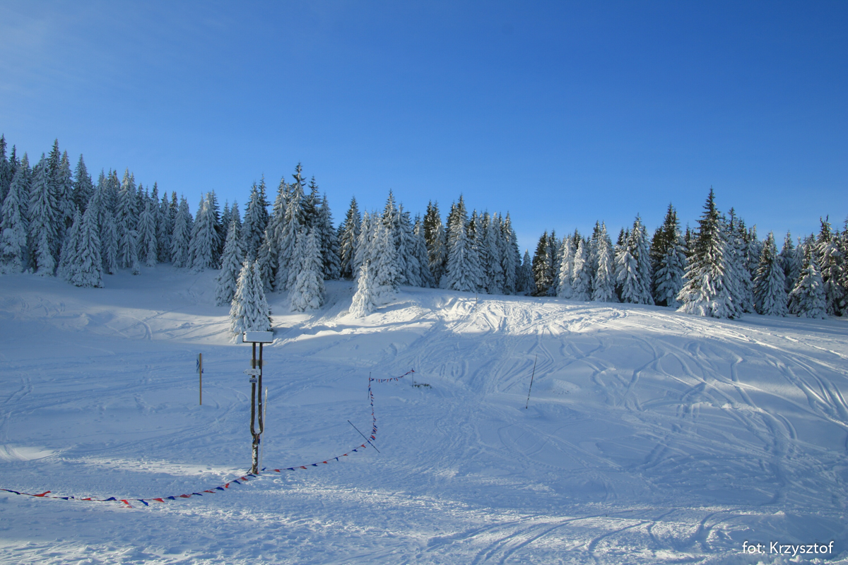 Wysokość znaków na polanie – w styczniu 2019 r., po ogromnych opadach śniegu grubośc pokrywy wynosiła pona 1 m