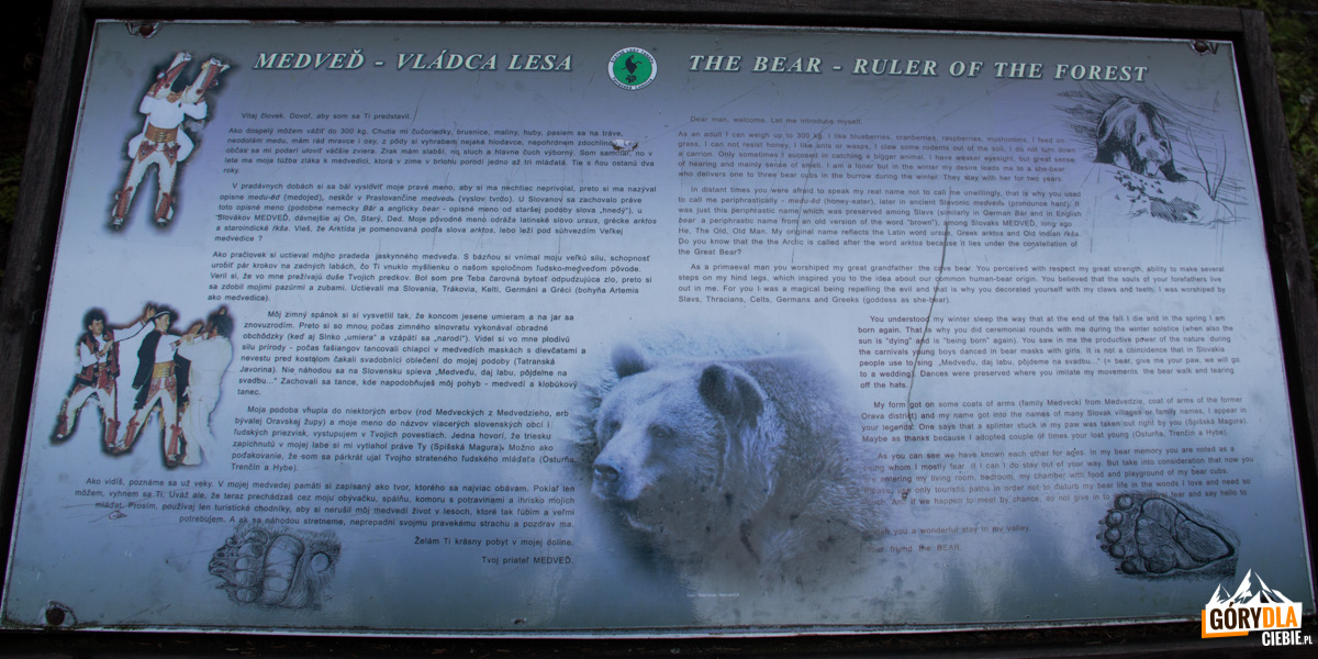 Szlak zbiega na dno doliny i przekracza Potok Koperszadzki. Znajdują się tutaj zadaszone wiatami stoły i drewniane postaci niedźwiedzi.